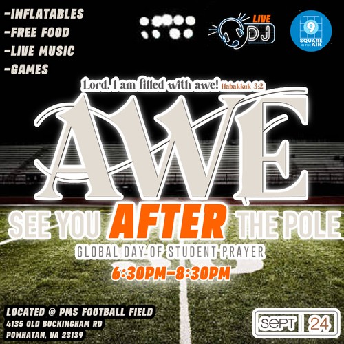 The most important thing you can do is bring yourself—and your family! The event begins at 6:30pm at the middle school football field. As students and young people step out in prayer, your presence and support make a HUGE difference. Invite friends and families you know—this is a night for the whole community!